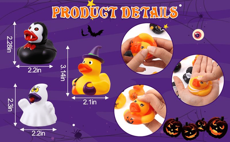 Ideal for Halloween parties, birthday gifts, baby showers, and classroom rewards, these rubber duckies guarantee smiles and laughter at any event while doubling as carnival prizes and educational toys.